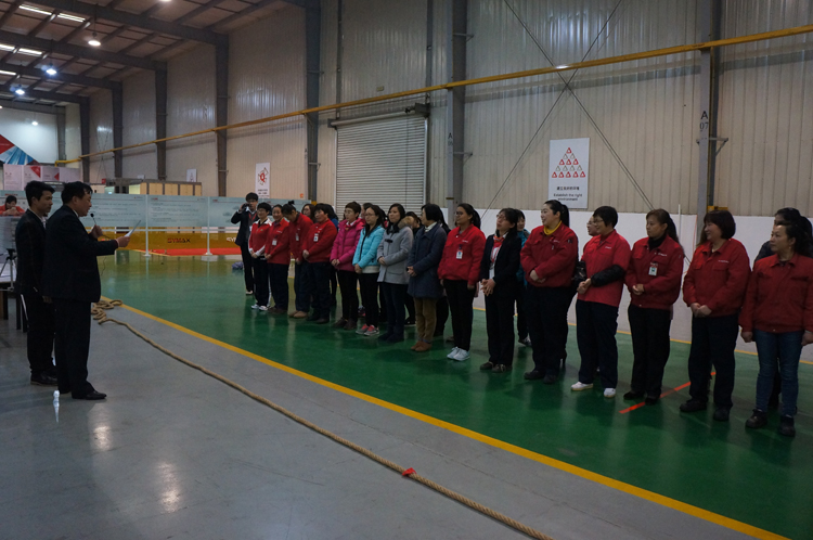 比賽開始前,公司工會主席、總監等各位領導親自到現場蒞臨指導為所有參賽隊員打氣,女領導還親自與員工一起互動,參與了比賽項目。